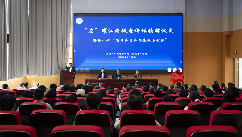 4月20日下午,我院麦田影院 举行“芯耀江海微电讲坛”揭牌仪式。中国科学院院士、武汉大学工业科学研究院执行院长刘胜应邀做首场专题讲座,并与校党委常委、副校长徐骏共同为“芯耀江海微电讲坛”揭牌。