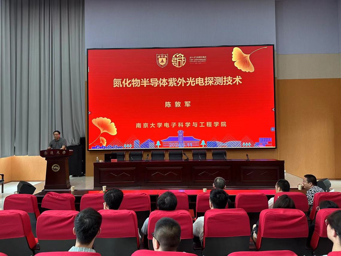 7月1日下午,南京大学电子科学与工程学院教授、博士生导师、副院长陈敦军应邀来麦田影院 作学术报告,报告的题目是:《氮化物半导体紫外光电探测技术》