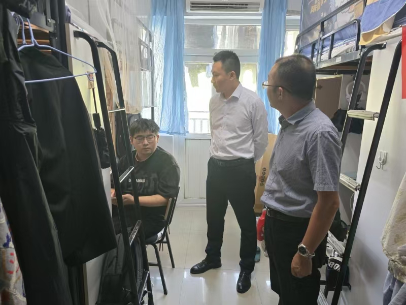 5月29日下午,麦田影院 党总支书记金翼、副书记卢玉军带队深入学生宿舍,开展宿舍安全检查并看望毕业生。
